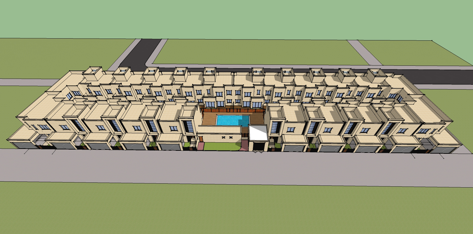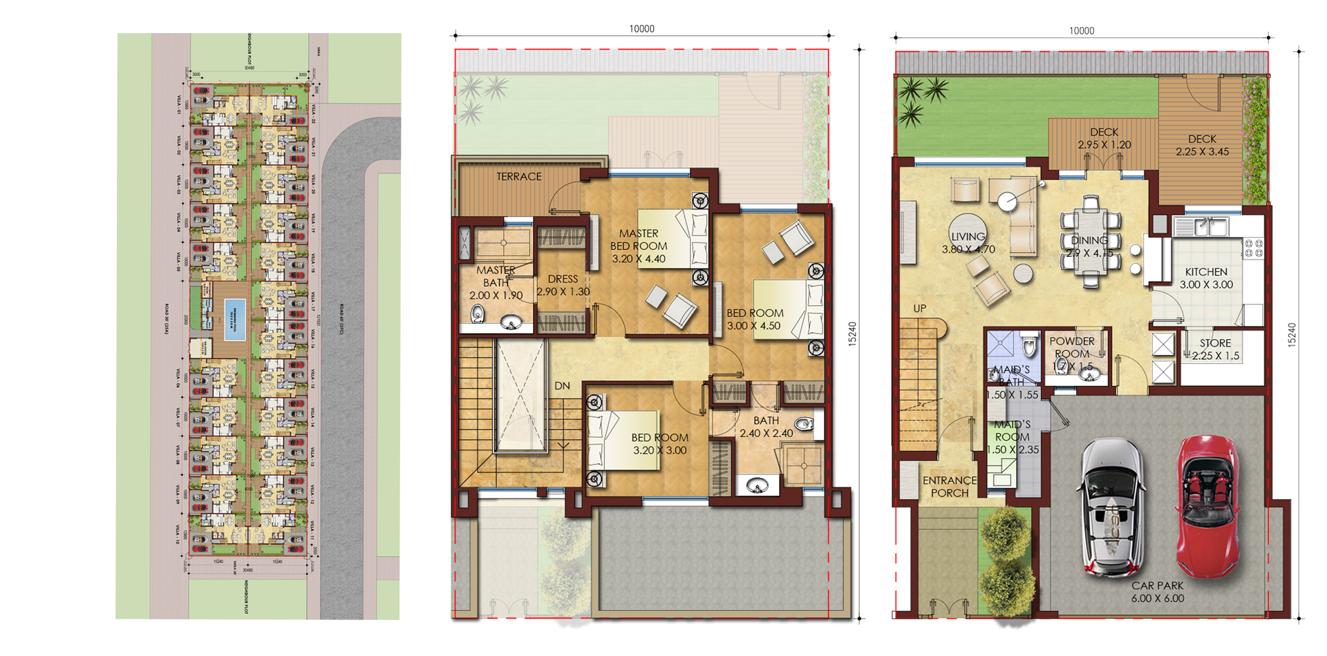 another with a 22 numbered 3-bed villas with a community swimming pool and car garages