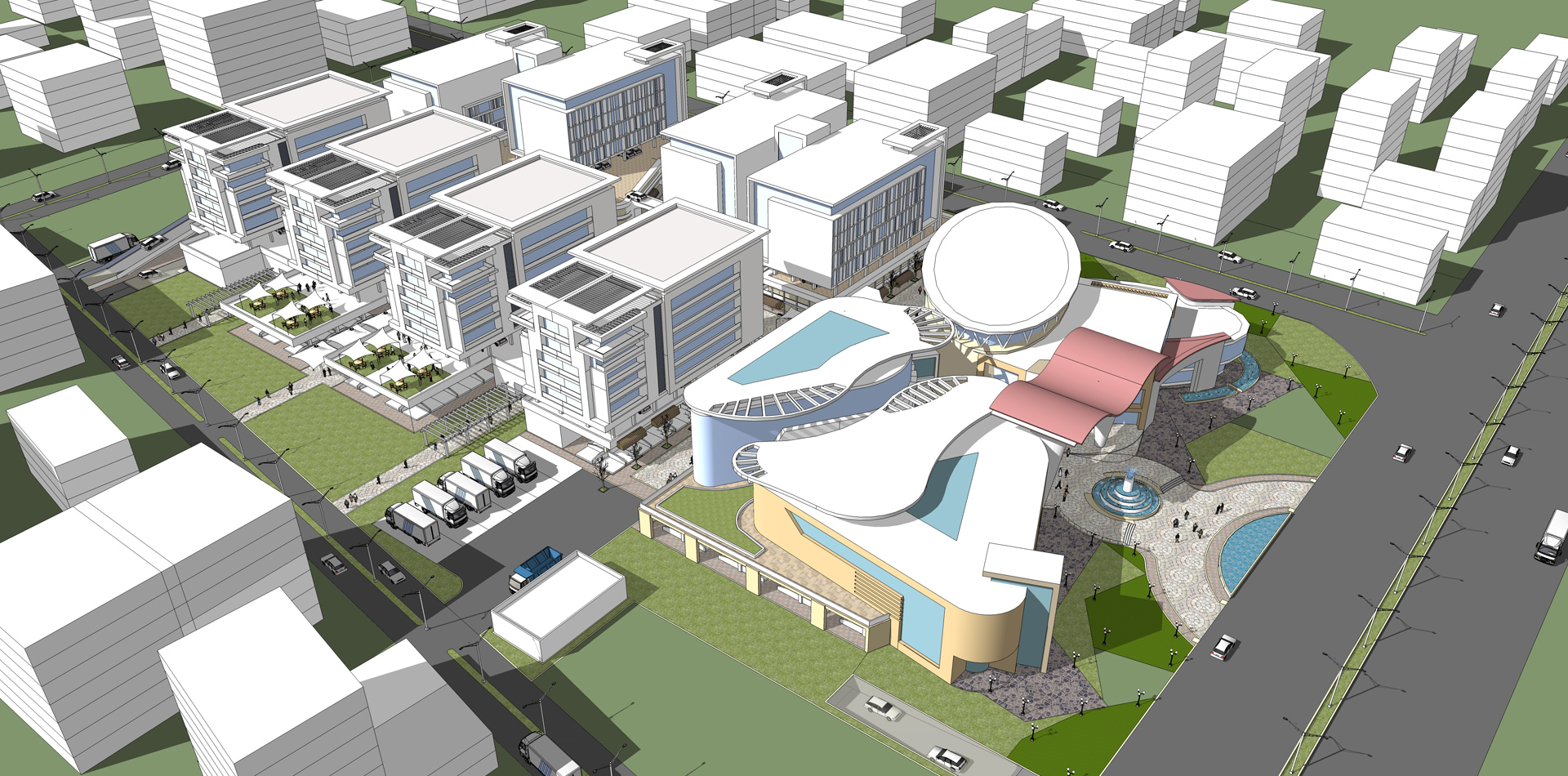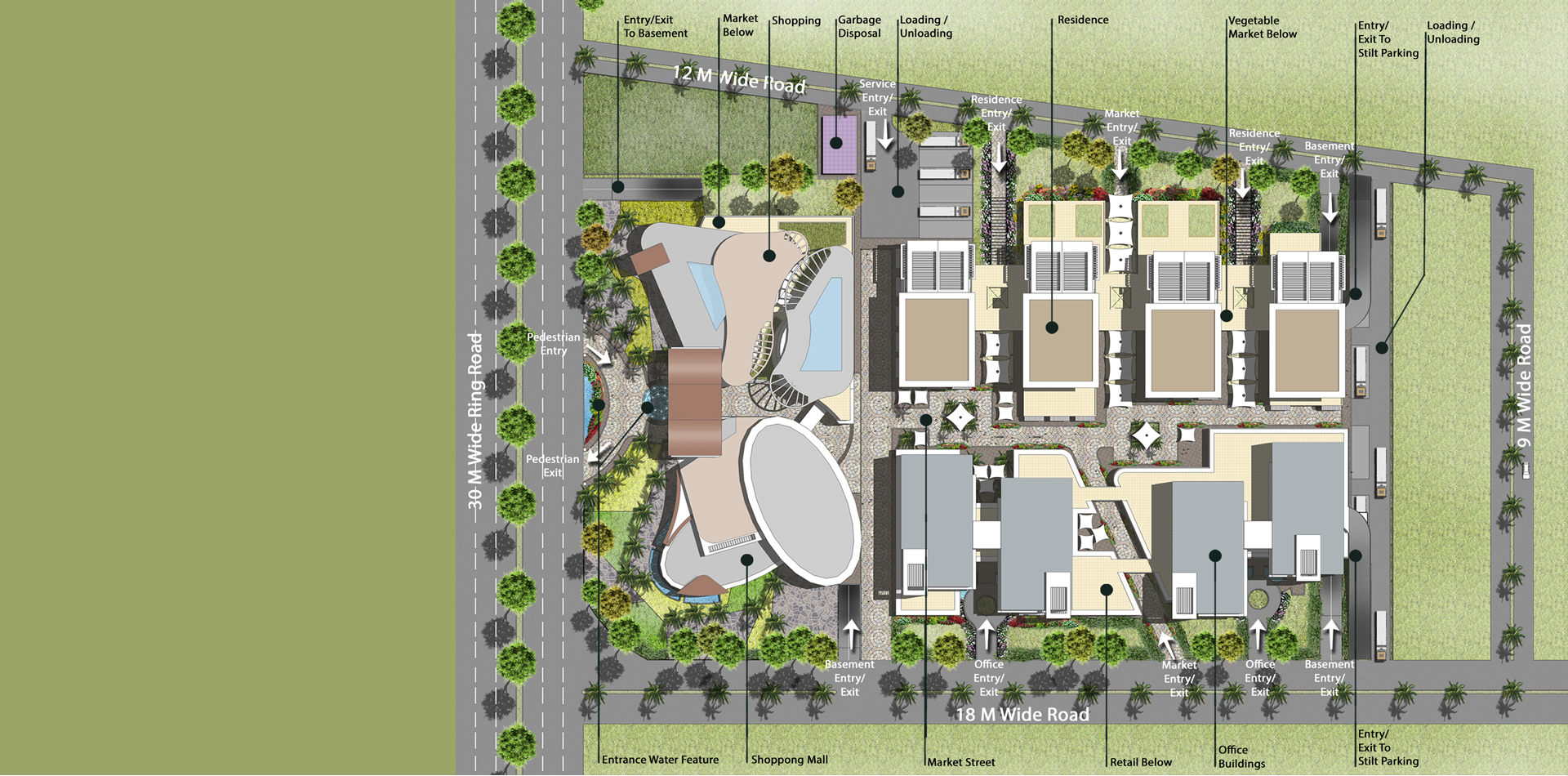 Located at the centre of the hustling Nagpur city; this 8 acres mixed-use development required setting up a new modern market complex on a plot of size 31,100sqm with shopping mall, retails, commercial, residential and vegetable market with a total BUA of 62,200sqm. The Master Plan was developed as an open public plaza concept, allowing proper segregation of the various zones keeping in mind harmonic order between the pedestrian and vehicular movements.