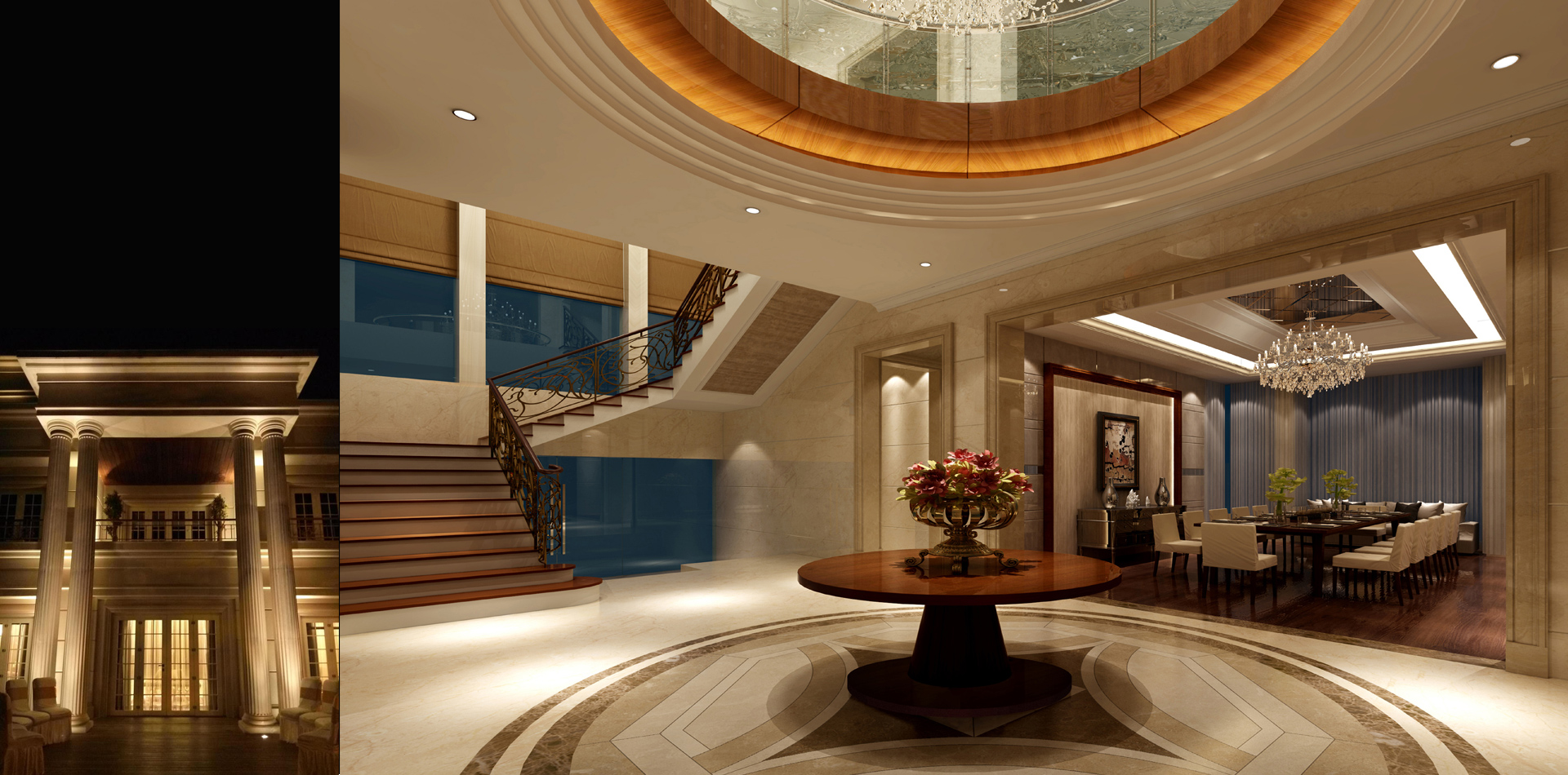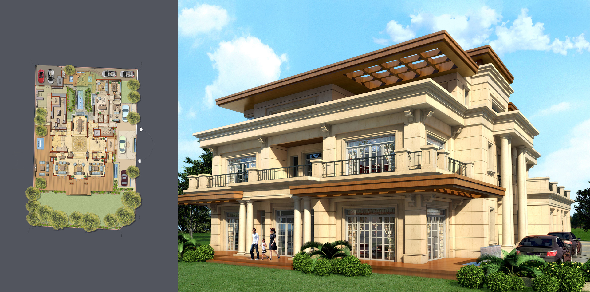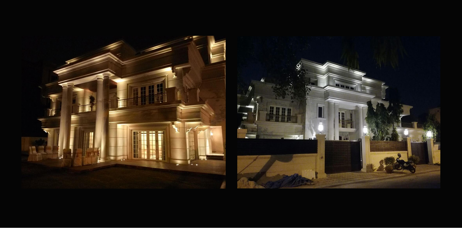 A high end G+2 storey villa designed for one of India’s biggest entrepreneur in classical style in one of the high profile areas of Luten’s New Delhi. The Roman colonnade style entrance porch leads to a grand double height lobby connecting formal & in-formal living and dining room. There are 6 bedrooms on the upper storey with family lounges, TV hall, balconies and terraces. A well landscaped and decked rear courtyard compliments the lifestyle.